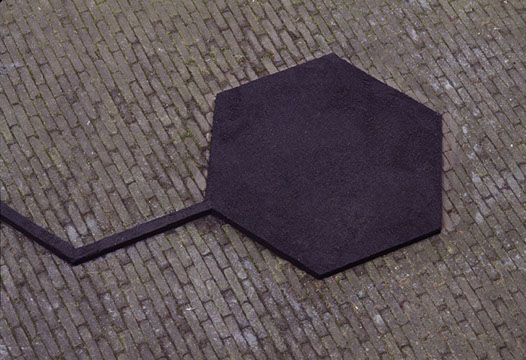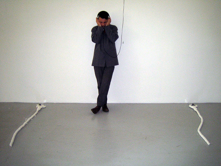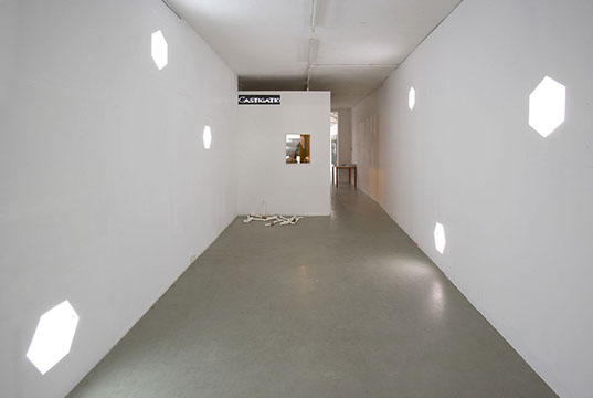Parteka’s works connect material to a concept and vice versa, his sensitivity and use of unusual materials have a purpose outside of the pragmatic, as does the carefully chosen special blend of thick, black liquid in his large installation at Kling & Bang Gallery. The color and texture of the liquid, which flows in soothing rhythm around the room, visible only through cut out forms in the walls, have direct reference to the black bile; melancholy. A sonic part of his installation is a sound piece, which he has recorded with an Icelandic choir, a sound of breathing, which he has edited together so that it plays for one thousand years. The sound and pumping of the liquid are then programmed to sync with one another, in a sedative way, as many visitors of the show have experienced while being seduced into its ambience for up to three hours at a time. One can say that this works gives breath to the whole space, makes the space breathe and delicately tunes the visitor into its rhythm as well.”